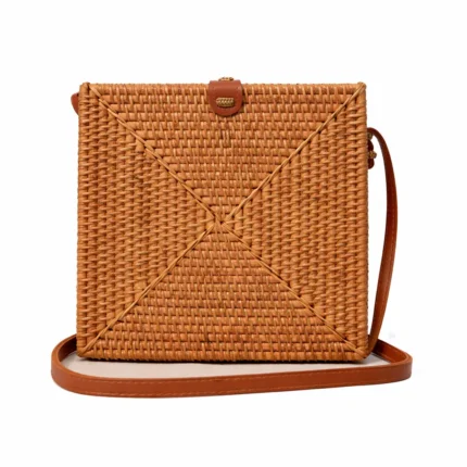 Bolsa de ratán natural tejida 100 % a mano por artesanos locales. El ratán es una fibra vegetal sostenible conocida por su resistencia, ligereza y elegancia natural. Su tejido trenzado refleja la tradición ancestral de Bali, fusionando diseño bohemio y estilo tropical.