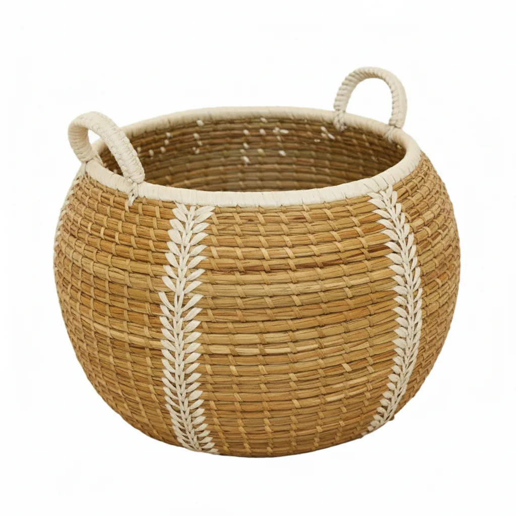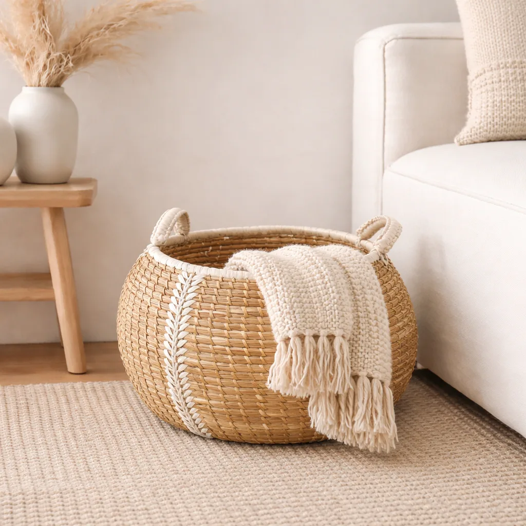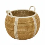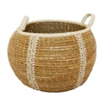 Cesto de pasto marino hecho a mano con materiales naturales: su diseño artesanal aporta textura y calidez a cualquier espacio, mientras que su estructura resistente lo convierte en una solución práctica para organizar y decorar.