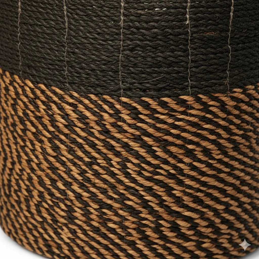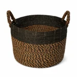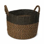 Cesto de pasto marino hecho a mano con materiales naturales: su diseño artesanal aporta textura y calidez a cualquier espacio, mientras que su estructura resistente lo convierte en una solución práctica para organizar y decorar.