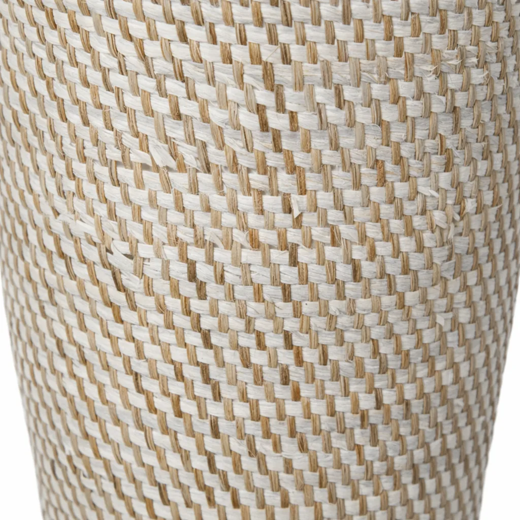 Pequeño cesto hecho a mano con fibra natural de ratán. Su tejido aporta un estilo cálido y orgánico, ideal para realzar arreglos florales secos o como contenedor decorativo. Una pieza única que añade un toque boho y elegante a cualquier espacio.