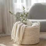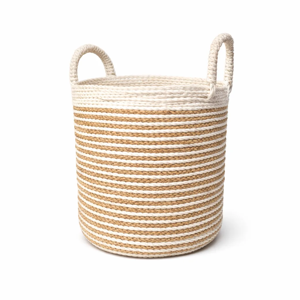 Cesto de pasto marino hecho a mano con materiales naturales: su diseño artesanal aporta textura y calidez a cualquier espacio, mientras que su estructura resistente lo convierte en una solución práctica para organizar y decorar.