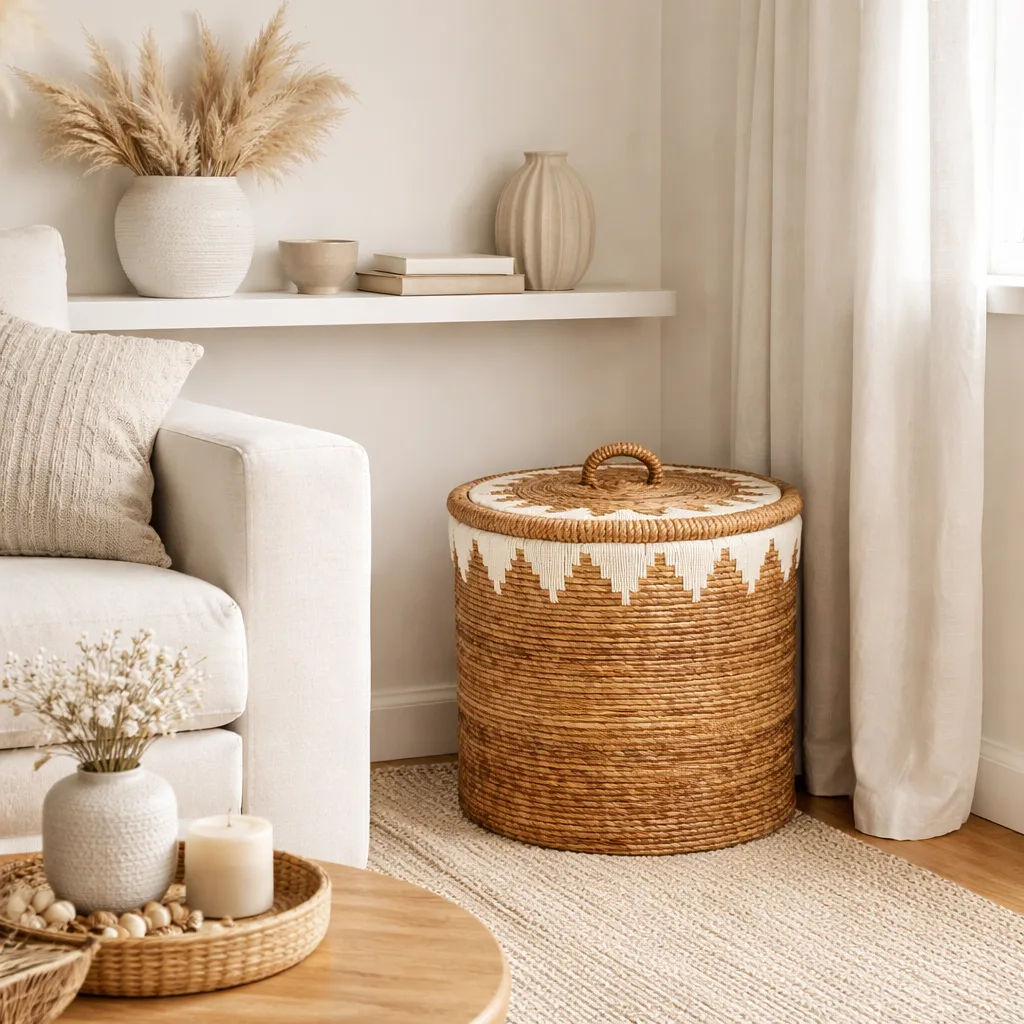Set de cestos inspirados en las artesanías tradicional balinesa, estos cestos tejido con hojas de plátano y con detalles de macramé, aportan una presencia cálida y natural. Una pieza única que suma autenticidad y funcionalidad a tu hogar.