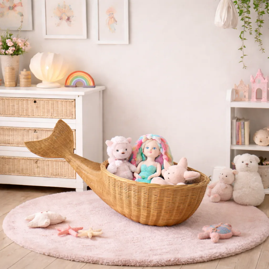 Llena de magia y fantasía los espacios infantiles con esta hermosa cola de sirena hecha de ratán, elaborada a mano por artesanos de Bali. Su diseño curvo y detallado recrea perfectamente la silueta de una sirena, convirtiéndola en un adorno de pared ideal para cuartos temáticos y áreas de juego.