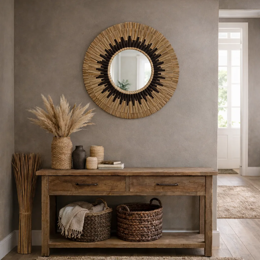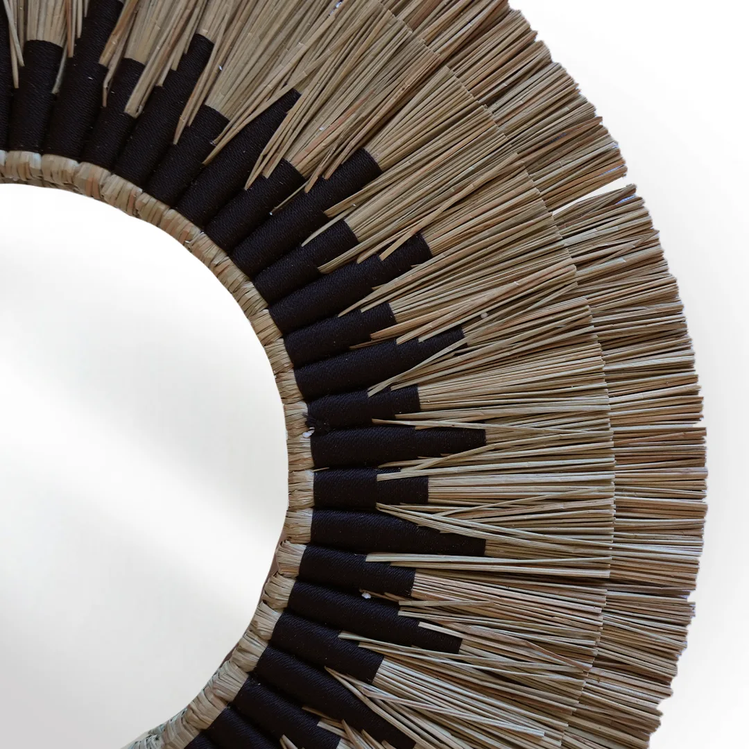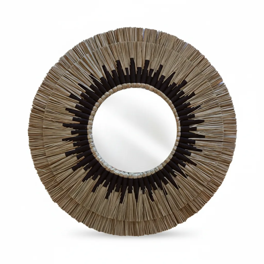 Hecho a mano por artesanos locales con pasto marino natural, cada espejo cuenta una historia de tradición y belleza.