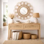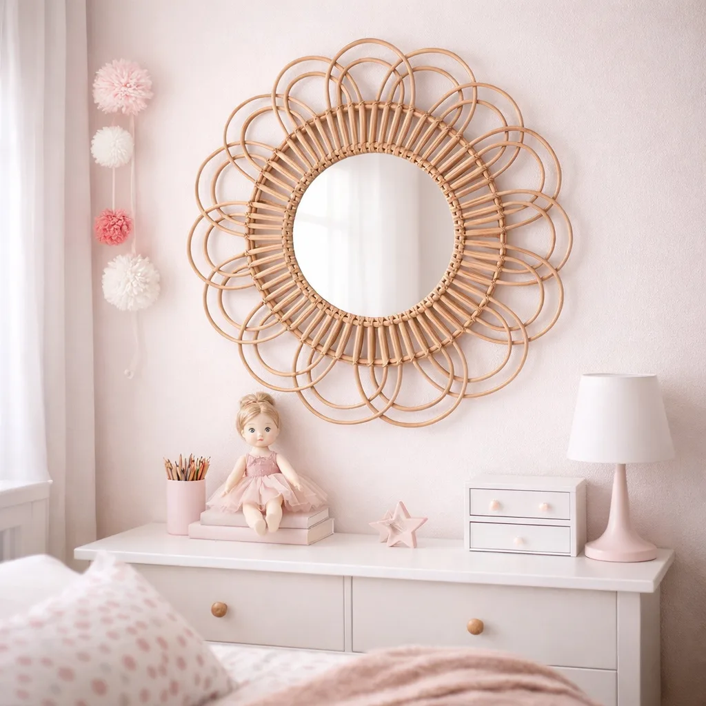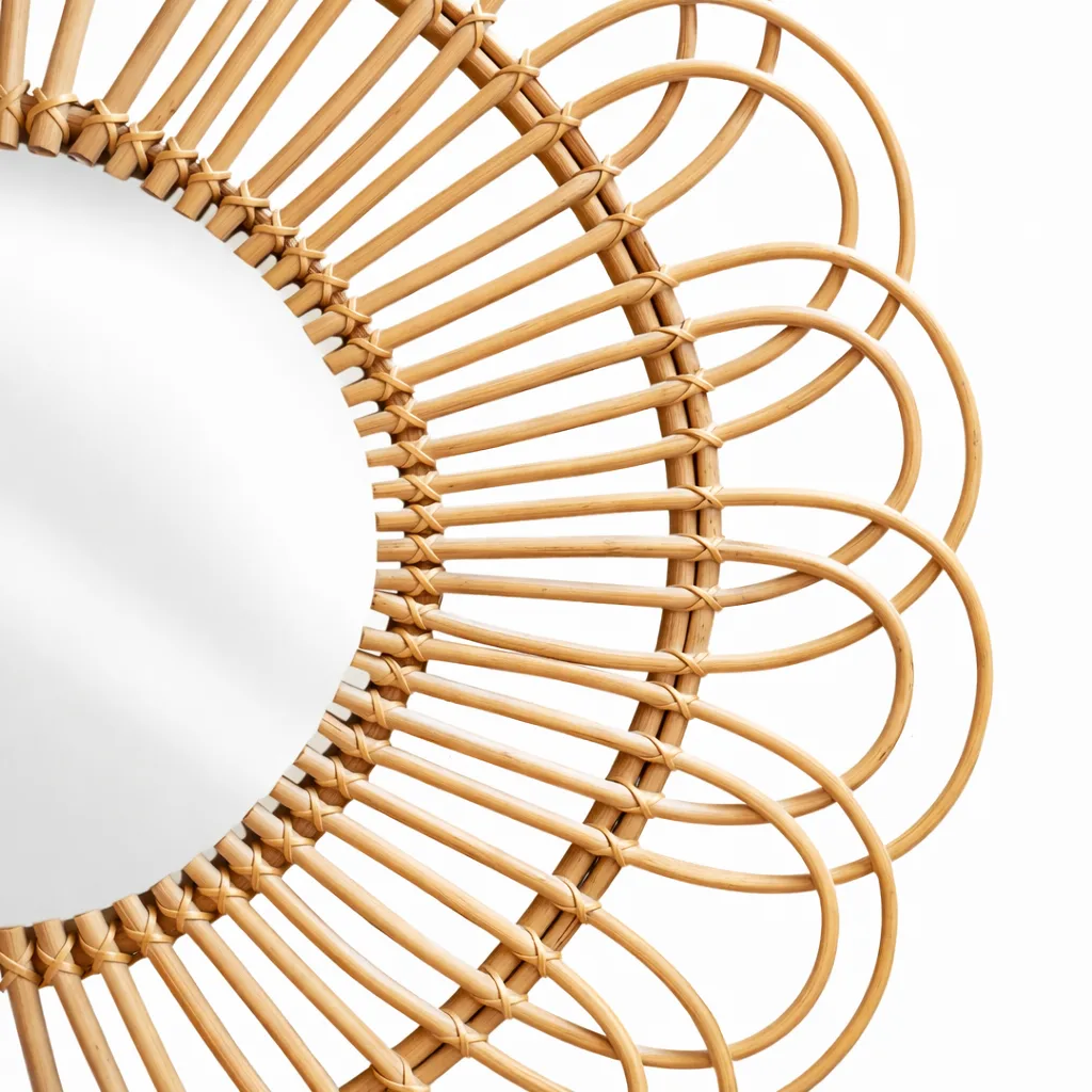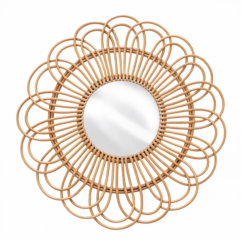 Este espejo de ratán ha sido tejido a mano por artesanos balineses que mantienen vivas sus tradiciones generacionales. Su acabado natural, sumado a su diseño inspirado en la naturaleza, lo convierte en una pieza única capaz de llenar cualquier ambiente de luz, armonía y el encanto relajado de Bali.