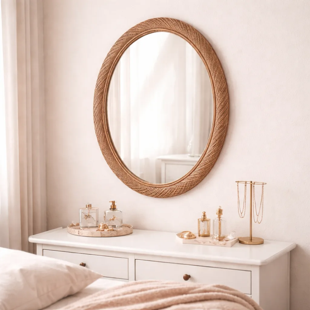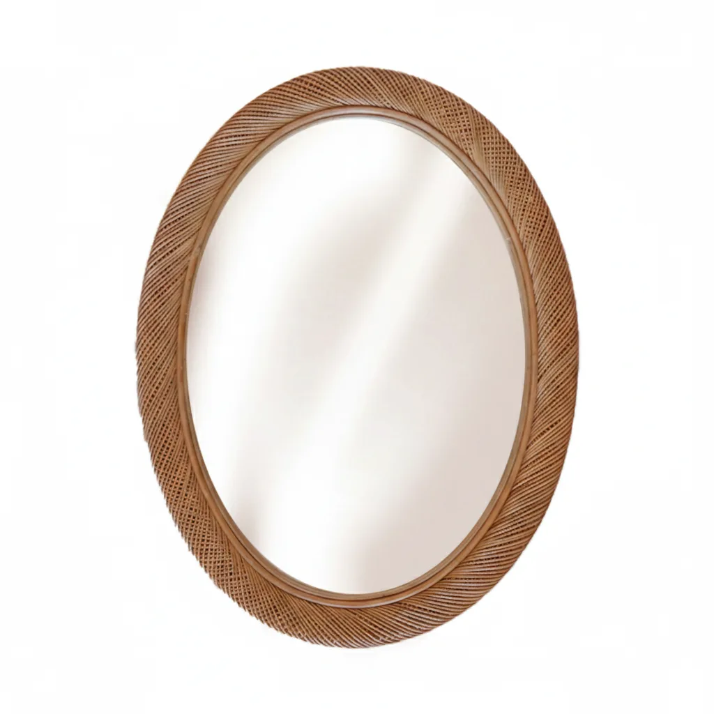 Este espejo de ratán ha sido tejido a mano por artesanos balineses que mantienen vivas sus tradiciones generacionales. Su acabado natural, sumado a su diseño inspirado en la naturaleza, lo convierte en una pieza única capaz de llenar cualquier ambiente de luz, armonía y el encanto relajado de Bali.