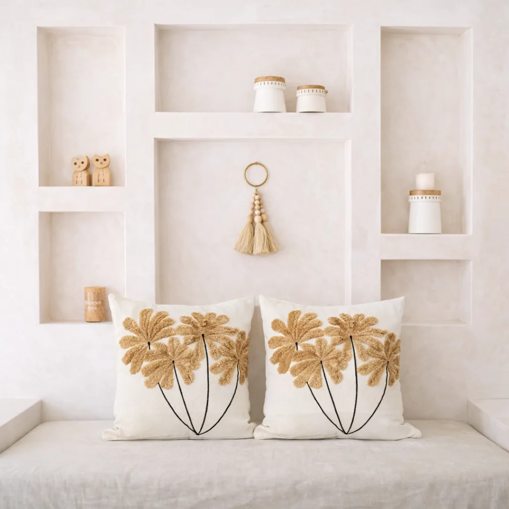 Descubre la calidez de nuestras fundas hechas 100% de algodón, cada pieza está elaborada y bordada con técnicas tradicionales. Su textura suave y su diseño único, las convierten en el complemento perfecto para sofás, camas o rincones especiales.