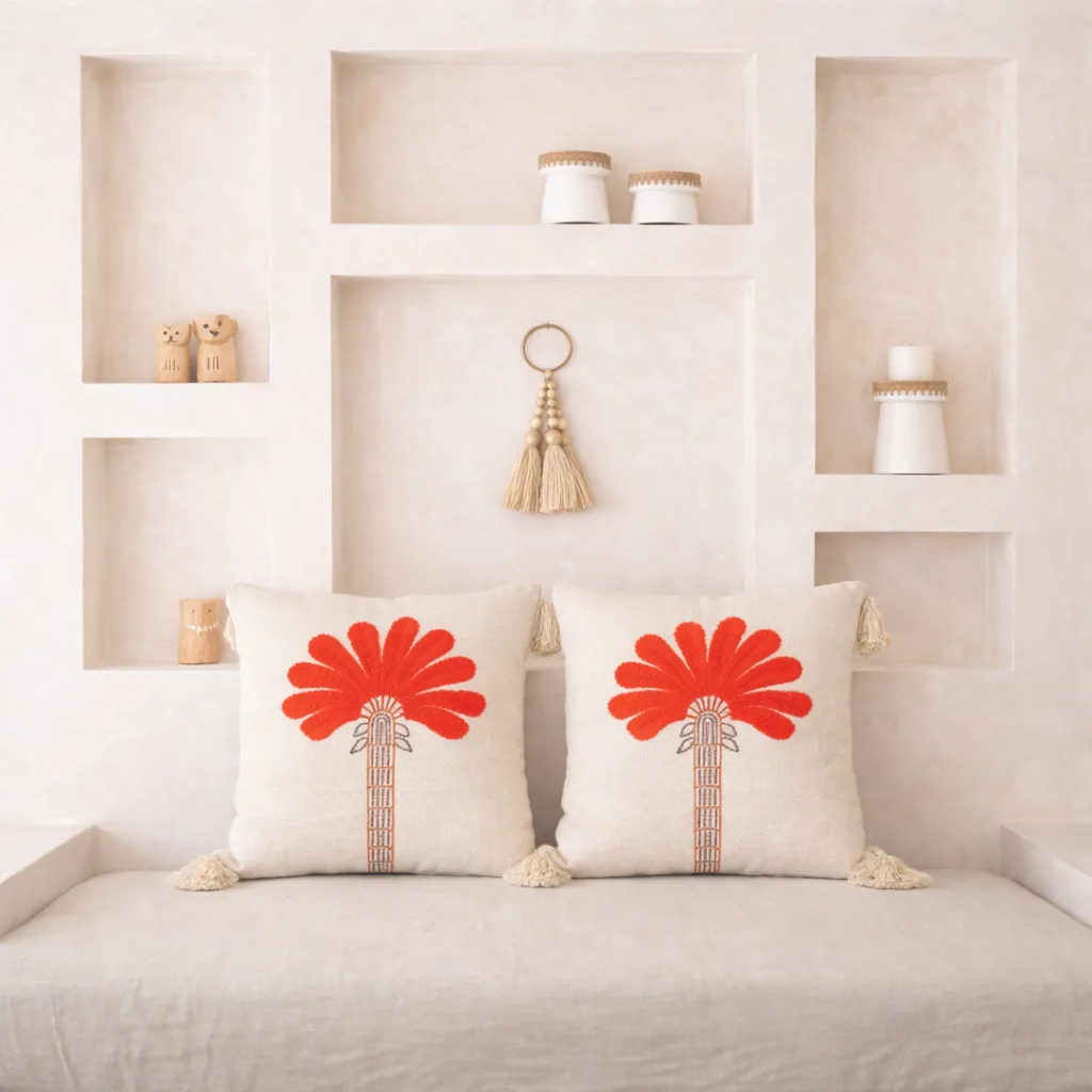 Descubre la calidez de nuestras fundas hechas 100% de algodón, cada pieza está elaborada y bordada con técnicas tradicionales. Su textura suave y su diseño único, las convierten en el complemento perfecto para sofás, camas o rincones especiales.