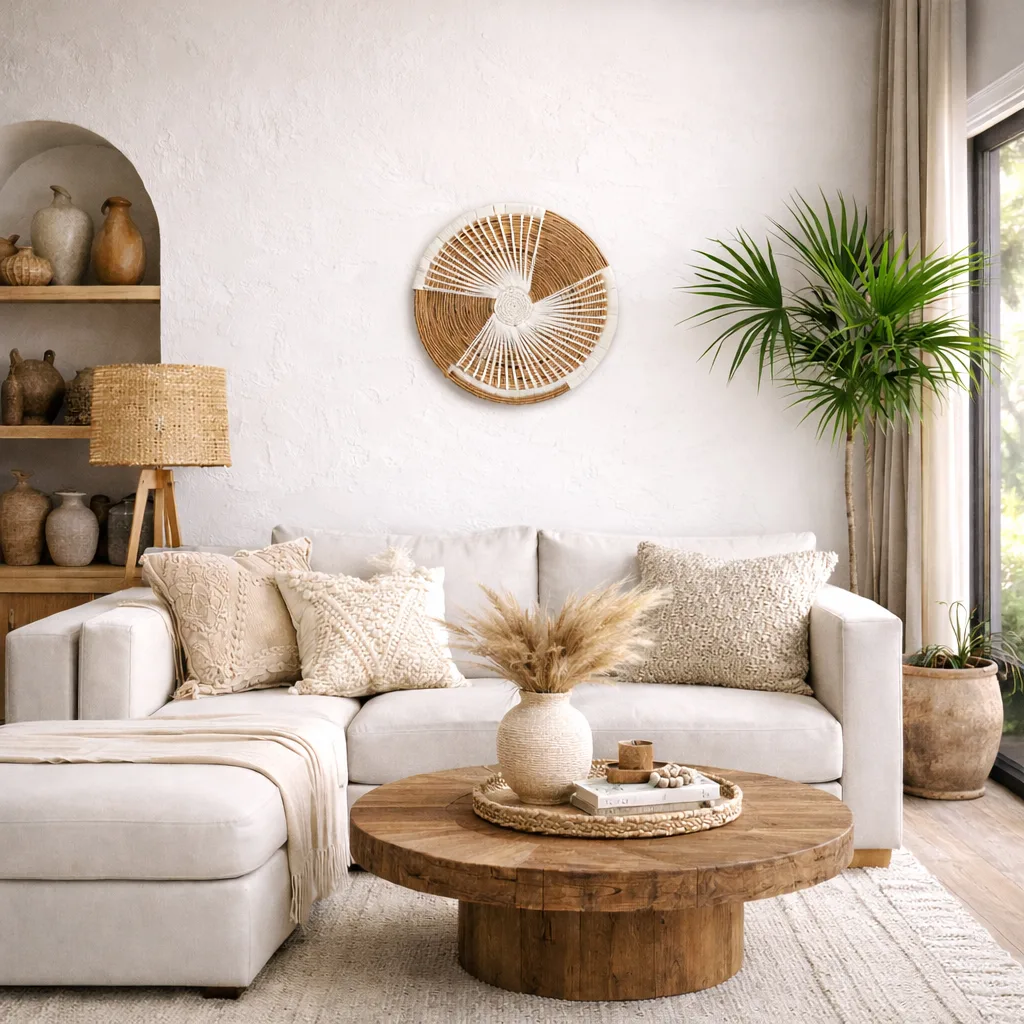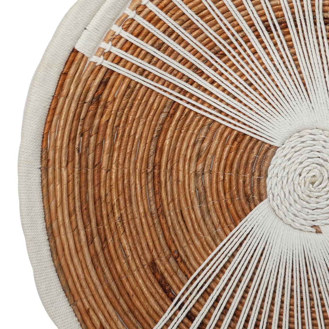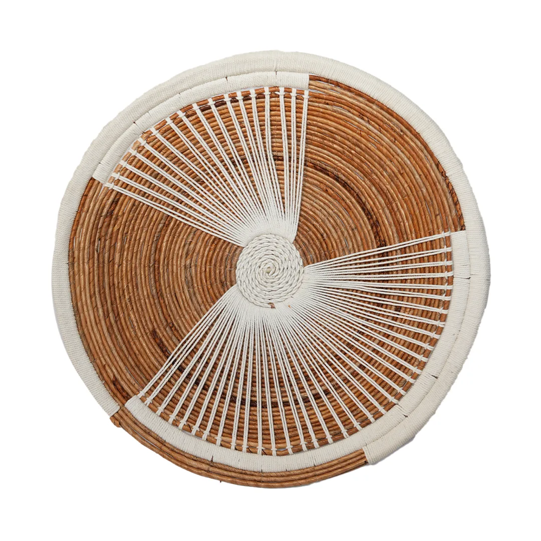Platos artesanales hechos de hoja de plátano con acabados en macramé: una decoración ligera y natural que realza tus espacios, creando paredes llenas de textura y encanto boho, ideales para transformar cualquier ambiente en un rincón acogedor.