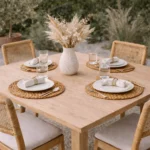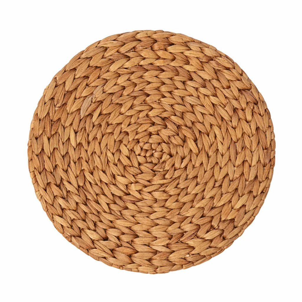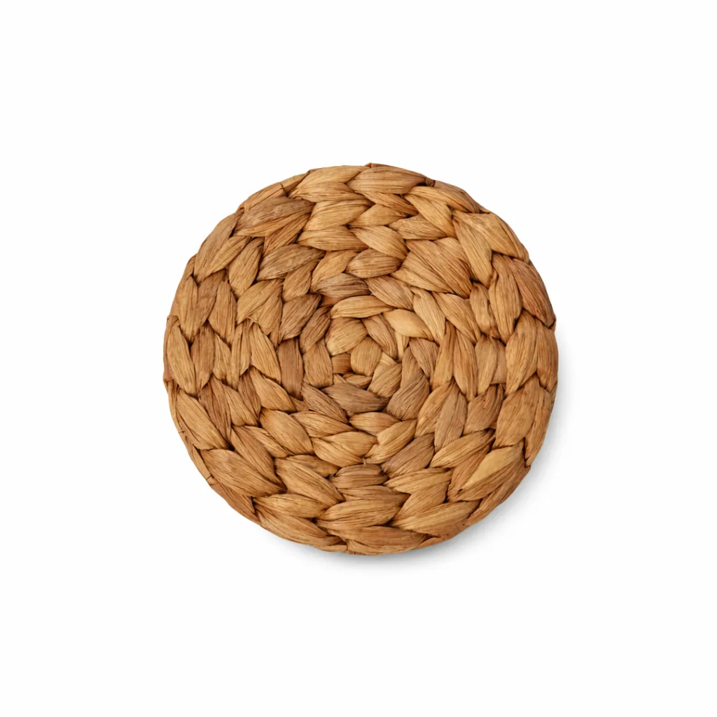 Eleva la decoración de tu mesa con estos elegantes portaplatos y portavasos hechos a mano con fibras de jacinto de agua, elaborados a mano por artesanos balineses. Su diseño aporta textura y un estilo boho perfecto para mesas modernas, rústicas o mediterráneas.